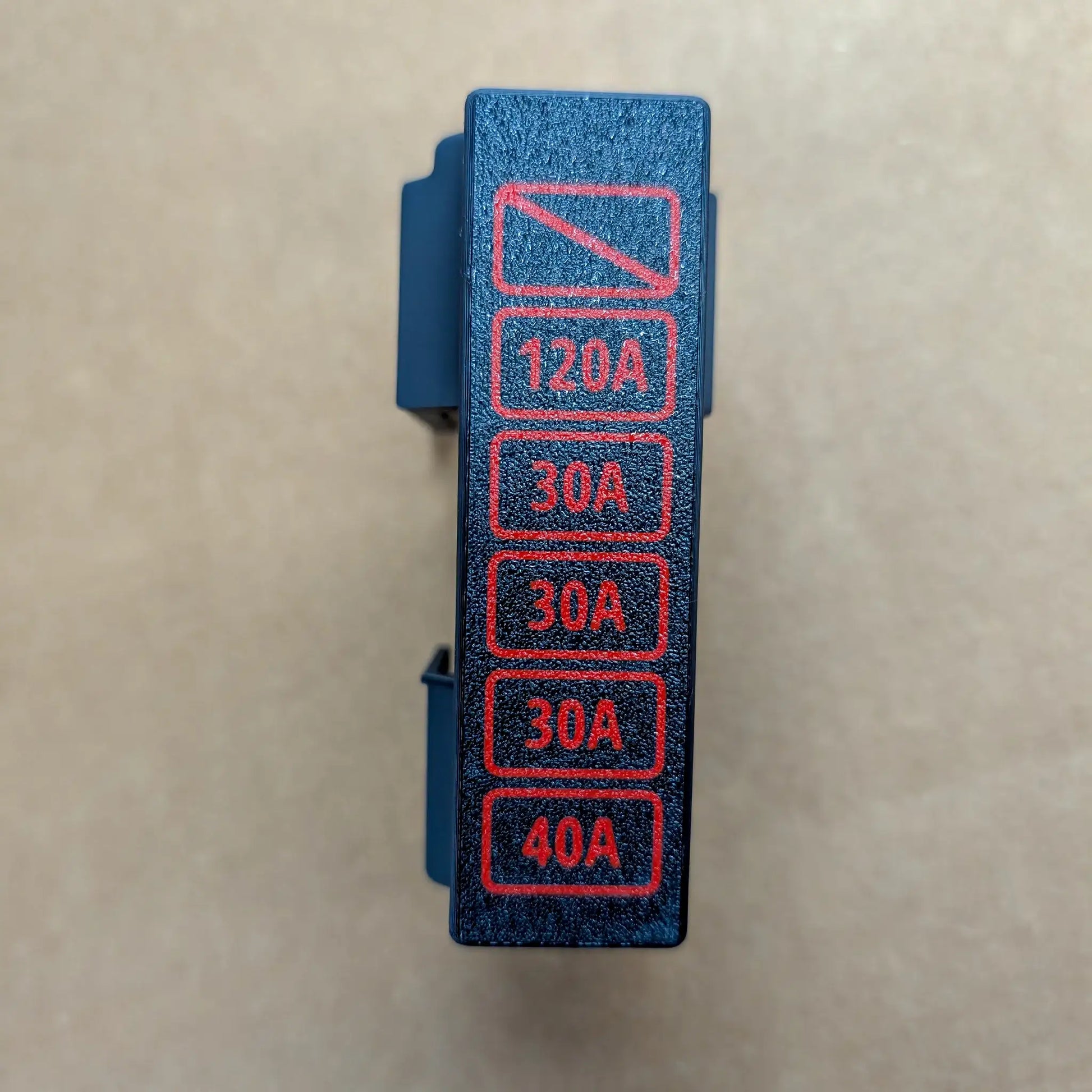 Fuse layout and amperages are cleanly embossed into the surface for a sleek, modern look. -